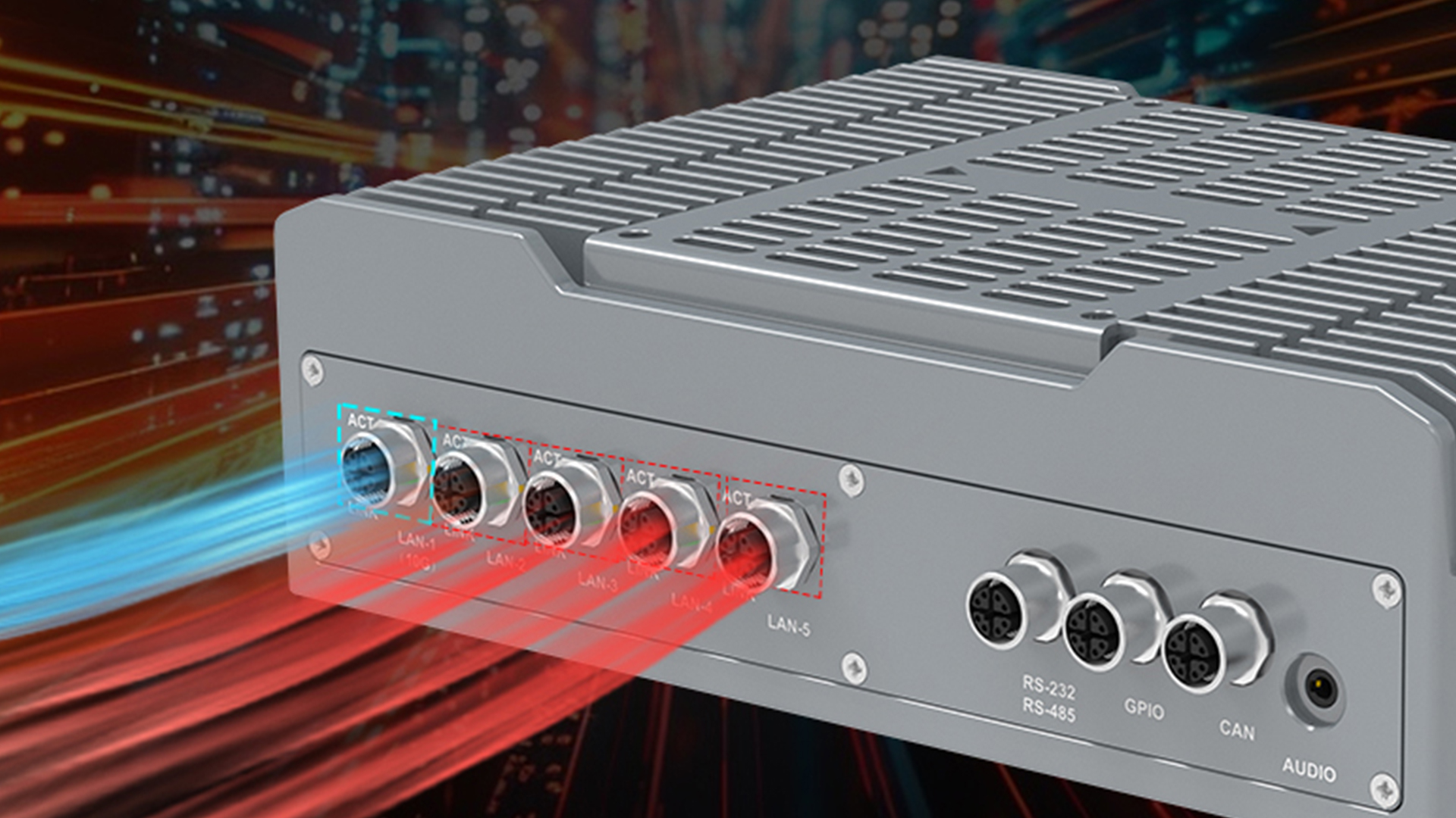 T1530G 以 “接口全、扩展性强” 为核心设计理念,构建起覆盖多场景的连接生态:4 个 M12 万兆网口(支持 PTP 授时,Lan2-Lan5 可选配 POE),满足高清摄像头、激光雷达等高速设备的数据流传输需求,5 个万兆网络通道的配置,更是为多设备协同计算提供充足带宽;