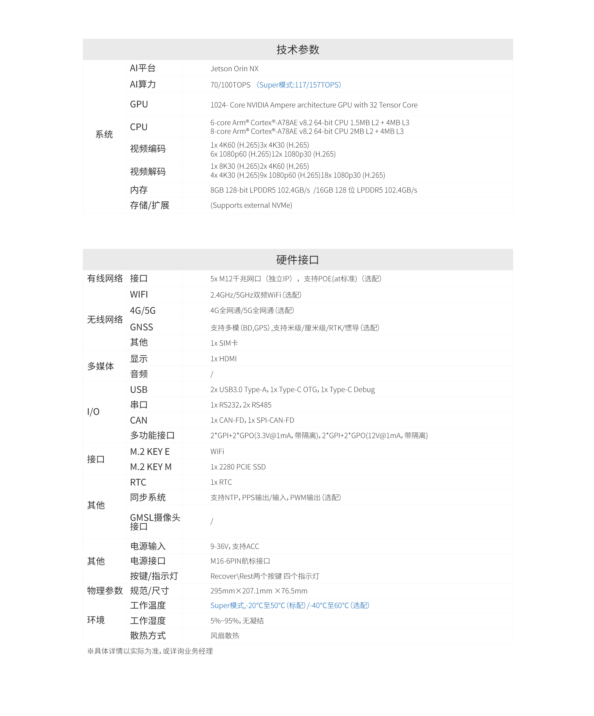 内置NVIDIA Jetson Orin NX