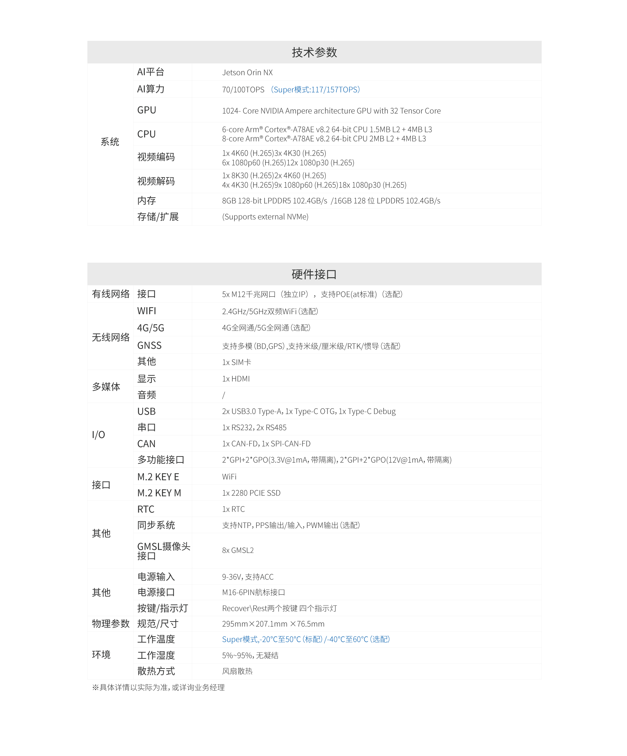 内置NVIDIA Jetson Orin NX