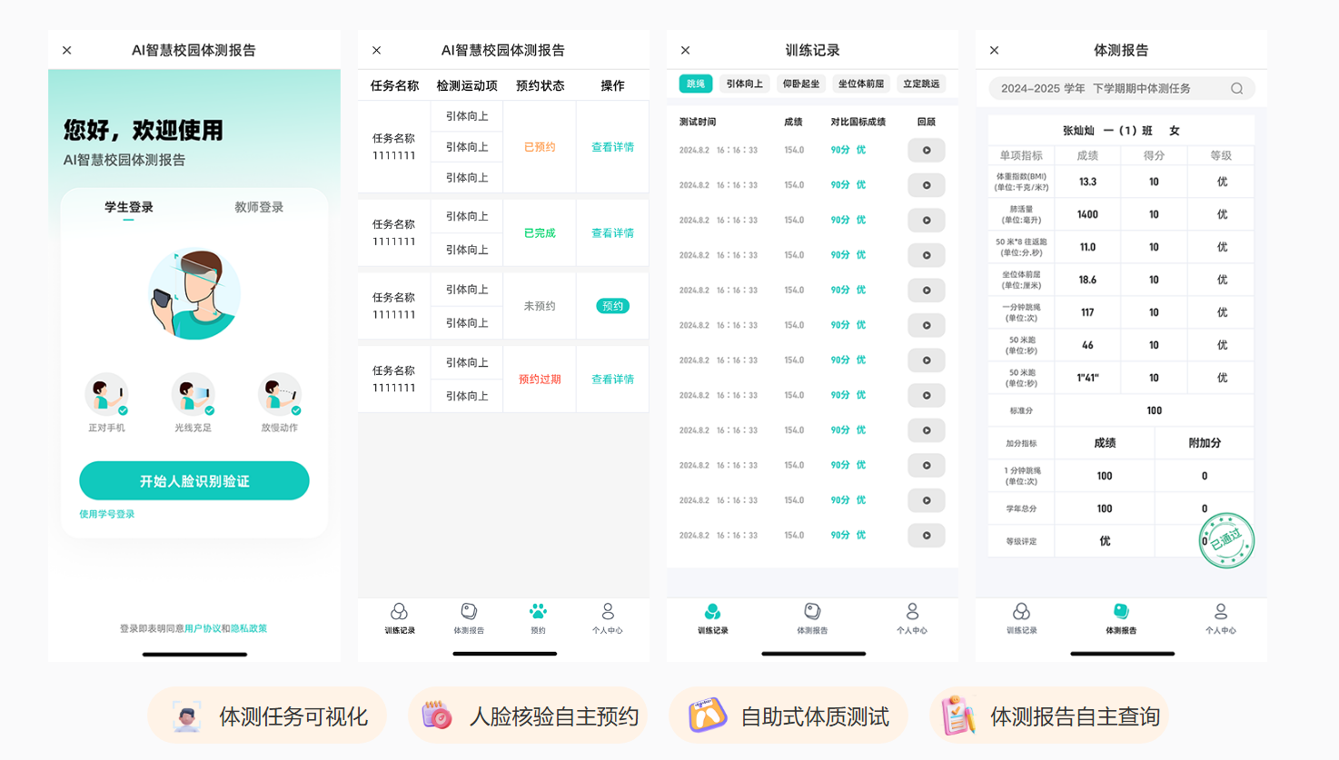 此外,该解决方案还融入了人脸核验技术,确保了体测过程的公正性和安全性。学生只需通过人脸识别即可自主预约并参与测试,整个过程无需人工干预,大大降低了人为因素带来的误差和不便。